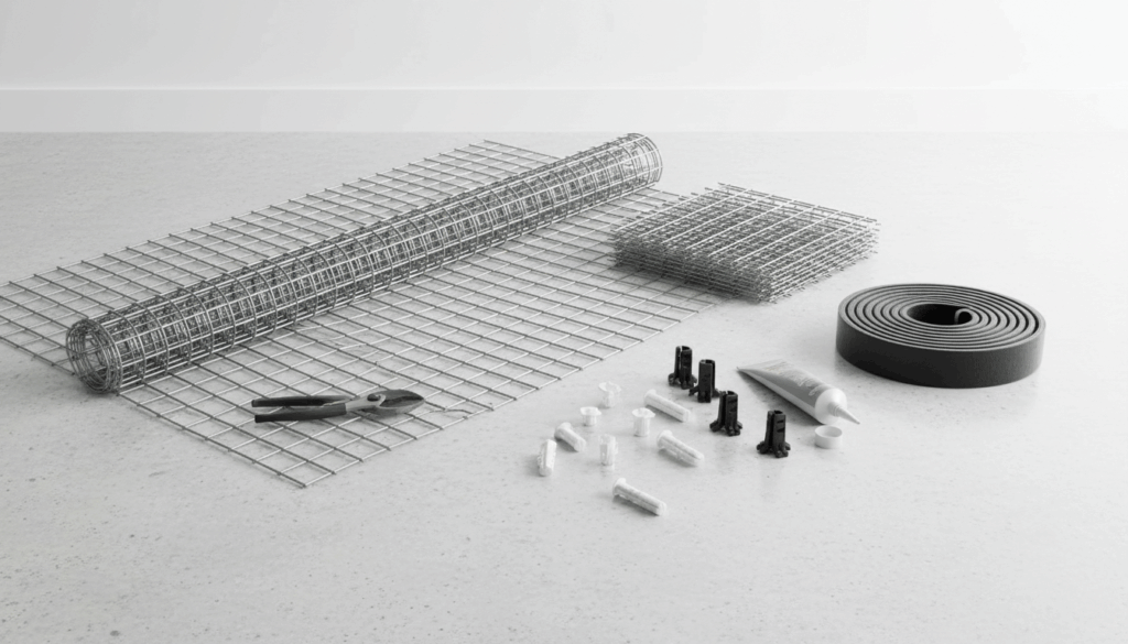 Til fastgørelse anvendes clips, plastikankre og klæbemidler som tilbehør. Vælg materiale og maskevidde ud fra miljø og belastning, og sørg for korrosionsbestandighed og varmebestandighed i installationen. For vejledning og valg af produkter i Armeringsnet og fastgørelse kan du besøge VVS.dk og Elvvs.