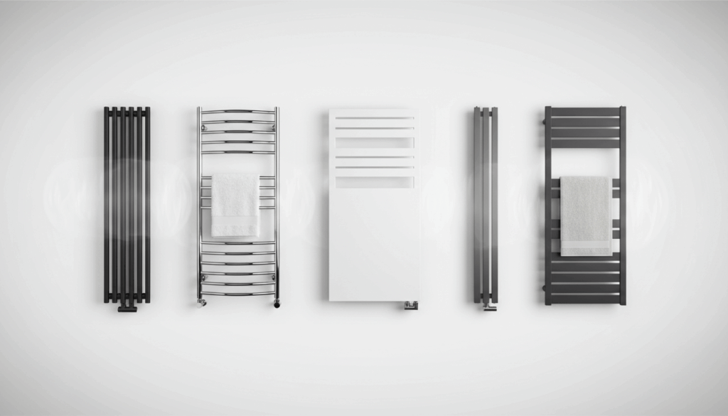 Ydelsen varierer typisk mellem 200 og 900 watt, hvilket giver hurtig tørreevne af håndklæder og en behagelig atmosfære. Materialer og finish spænder fra plan til buet udformning og fra krom til børstet stål eller sort finish. Overvej rumstørrelse, installation mellem vægge, drifttryk og stil, når du vælger model. Se eksempler hos Haandklaedetoerrer og DBVVS for variation og inspiration.