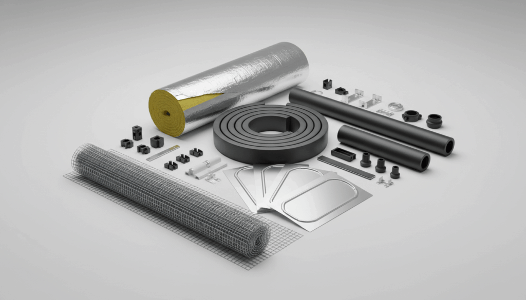Monteringsmaterialer og isolering samler alt tilbehør, som gør VVS- og varmeinstallationer sikre og effektive: monteringsbeslag, klemmer, tætningslister, rørskåle og samlemuffer samt isoleringsmaterialer og varmefordelingsløsninger. Her finder du isoleringsplader i forskellige tykkelser, rørskåle til universel brug, tubolit DG, Armaflex-skum og aluminiumsvægplader til gulvvarme. Armeringsnet og netunderlag giver stabilt montageunderlag til gulvvarmeinstallationer.