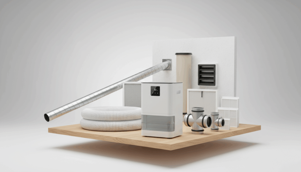 Ventilation & klima d e6kker produkter og l f8sninger, der styrer luftkvalitet, temperatur og fugt i hjemmet. I denne kategori finder du lamelventiler og klapventiler til at styre luftstr f8mme, T-stykker og nipler til fordeling samt fleksible flexslanger, spiralr f8r og kanalsystemer til nem installation i k f6kken, badev e6relse og andre rum. Til forbedring af indeklimaet findes luftrensere og filtre (HEPA og kanalfiltre) samt forskellige ventilsystemer til sm e5 og store rum. Ved k f8b bør du overveje diameter og l f6nge, materiale og korrosionsbestandighed, kompatibilitet med eksisterende systemer, 9st4f og energiforbrug samt vedligeholdelse og filterudskiftning. Nogle l f8sninger passer som komplette installationer fra leverand f8rer som WATTOO.DK og Elvvs.